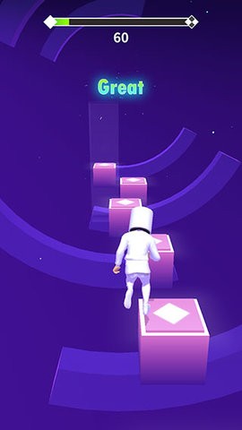 2、跟着节奏跑酷,准确地踏上每一个方块,与他人比拼准确度