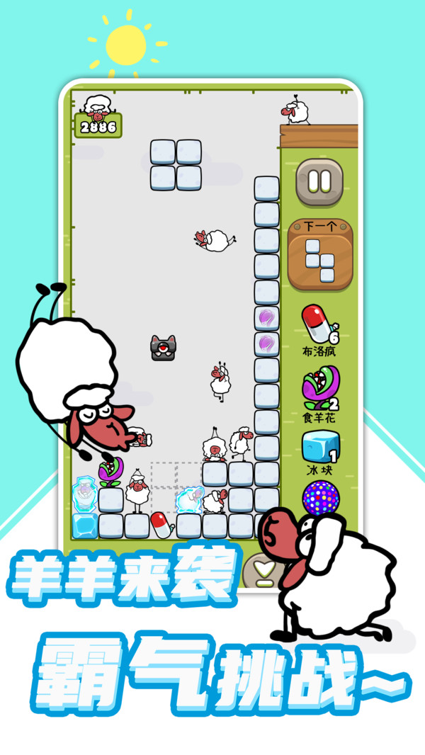 羊羊俄罗斯方块是一款以羊羊为主题的休闲消除俄罗斯方块类型的游戏,在游戏中有着画面精美,色彩鲜艳,视觉效果出色,让你沉浸在游戏中,开心的消除,主角是一只可爱的羊羊,让你能够感受到轻松愉快的游戏氛围,提供了各种道具,如快速移动、禁止敌人等,让你在游戏中获得更多帮助,感受丰富的游戏乐趣。