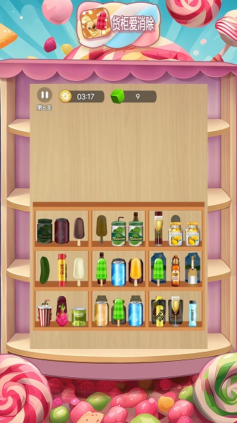 3、在关卡中,需要收集各种不同形状和颜色的糖果,每个关卡都有指定的糖果数量和类型要求。