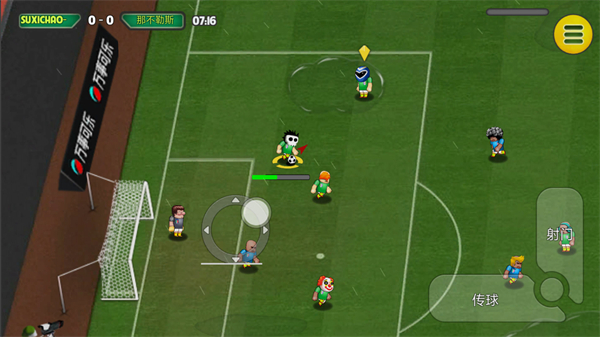 3、虚拟摇杆控制更简单,更容易使用,而且玩起来非常爽快刺激。 运球和射门等各种操作都可以轻松使用。