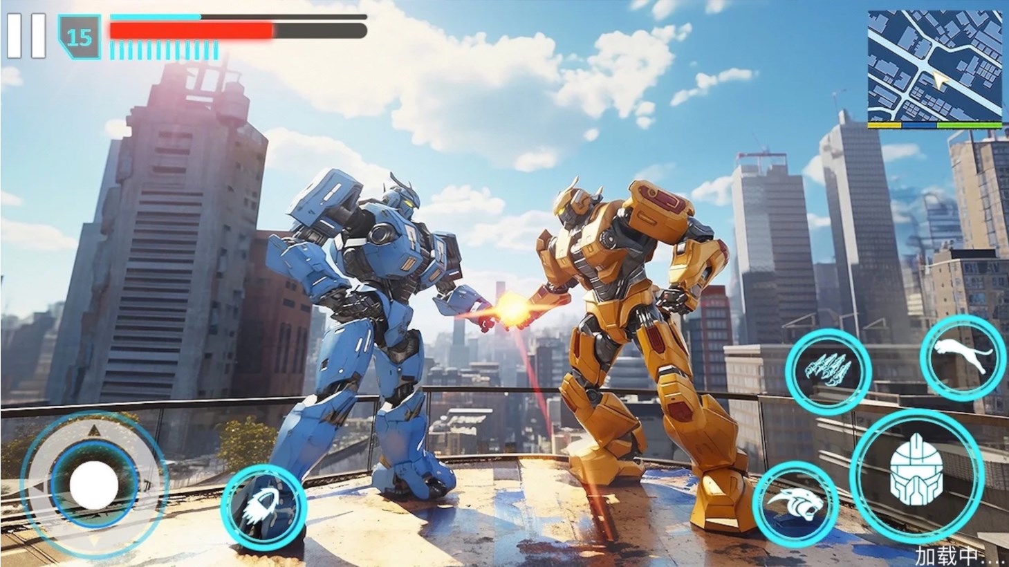 3、在游戏中,机器人可以进行普通攻击和必杀技攻击,使用武器进行远程攻击或格挡敌人的攻击等。