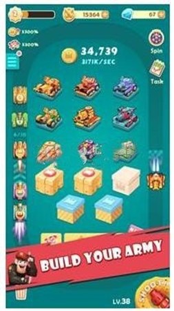 3、合并升级坦克的玩法,让玩家可以通过收集道具和策略指挥,打造最强坦克。