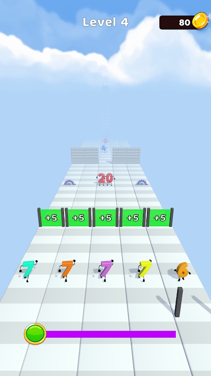 控制数字的变化是一款很有趣的跑酷闯关游戏,玩家在游戏内需要快速的奔跑,躲避各种障碍物,非常考验玩家的敏捷度,丰富的关卡有着不同的难度玩家都是可以进行体验的,喜欢跑酷游戏的玩家不要错过了,游戏内的道具很多,玩家可以选择,赶紧来下载试试吧。