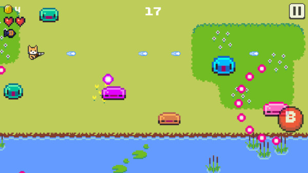 有难度的地图史莱姆也具有攻击力,玩家移动像素猫的位置,灵活避开。