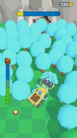 2、竖版的游戏界面,精致的配色,流畅的游戏运行,虚拟摇杆控制伐木车的移动。
