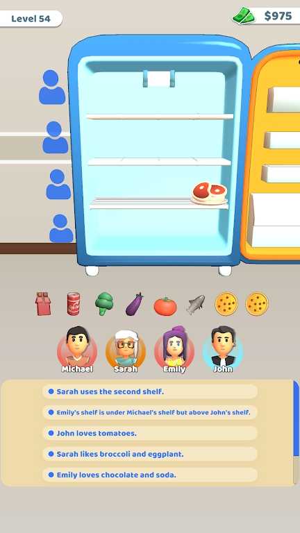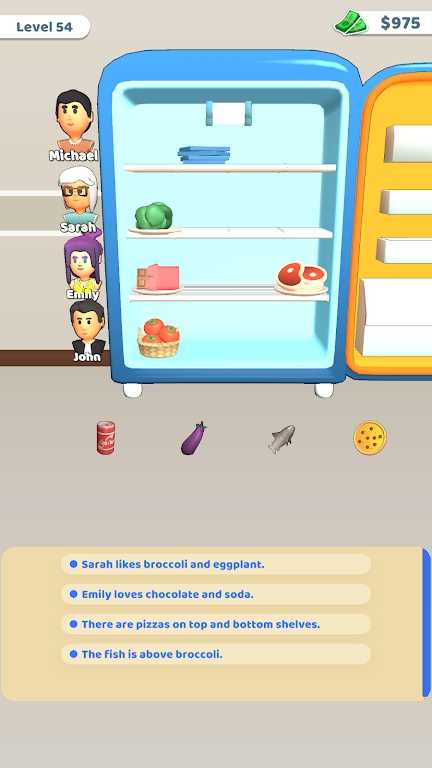 冰箱分类大挑战是一款非常好玩的手机收纳整理题材游戏,在这款游戏中玩家们能够感受到最趣味的物品整理体验,在游戏中玩家们要利用好冰箱里面的储藏空间,顺利的个根据物品的形状以及性质进行分类摆放,顺利的装下所有的物品,非常的趣味,赶快下载挑战吧。