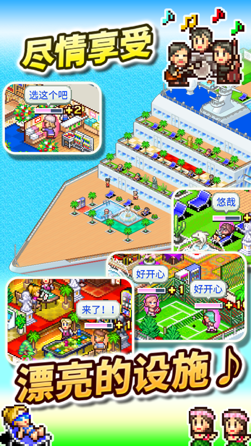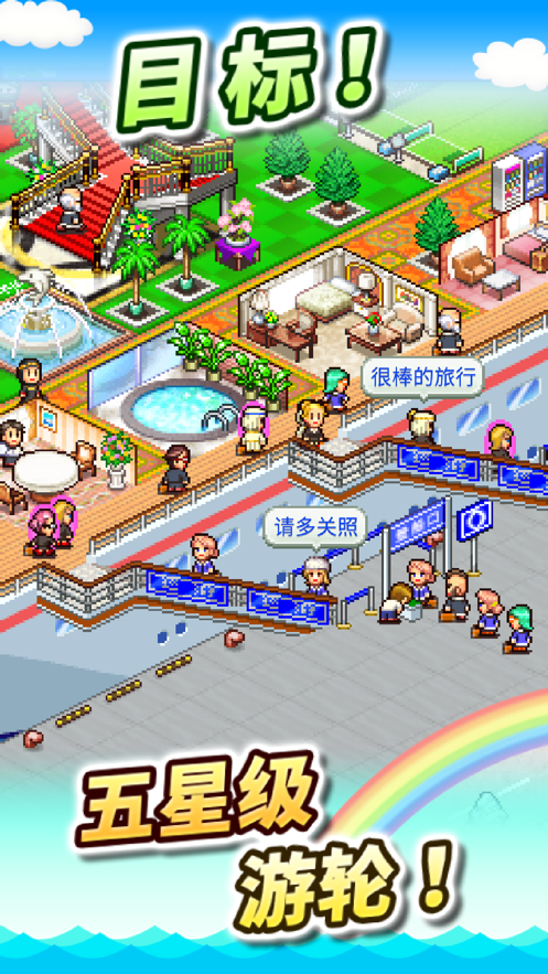 豪华大游轮物语是一款以像素画风为主的模拟经营类型的游戏,在游戏中玩家将会扮演一名游轮公司的老板,通过各种操作和管理经营着游轮公司,通过招募、培训和升级船员,确保他们能够胜任各自的工作,有众多不同类型的邮轮和旅客,玩家需要根据不同的情况做出相应的经营决策,赚取更多的收益。