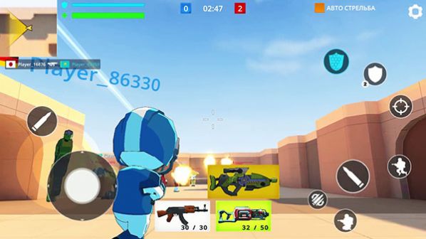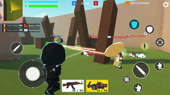 2、游戏内可以自由选择各种武器随时开战,通过灵活的操作控制人物淘汰所有对手,获得最终胜利。