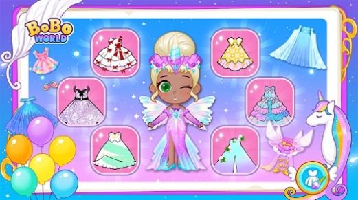 选择自己喜欢的独角兽,并搭配不同的装扮,打造出不同风格的独角兽公主。