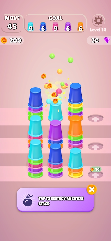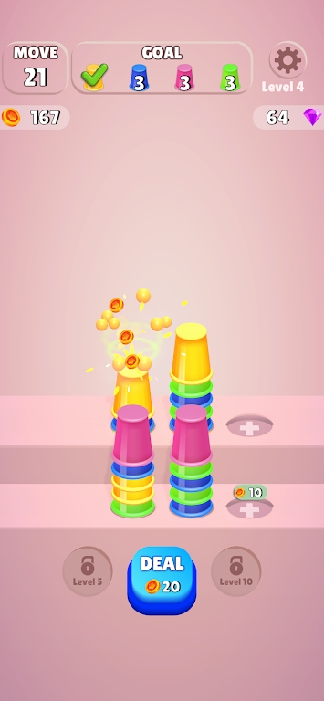 堆叠颜色杯是一款很休闲好玩的堆叠游戏,玩家需要将杯子准确的堆叠,游戏操作都是很简单的,每个玩家都是可以轻松上手的,这里的游戏画面十分的舒适,带来很好的游戏过程,玩家需要精准的把握时机,需要在特定的时间内完成堆叠的任务赶紧来下载试试吧。