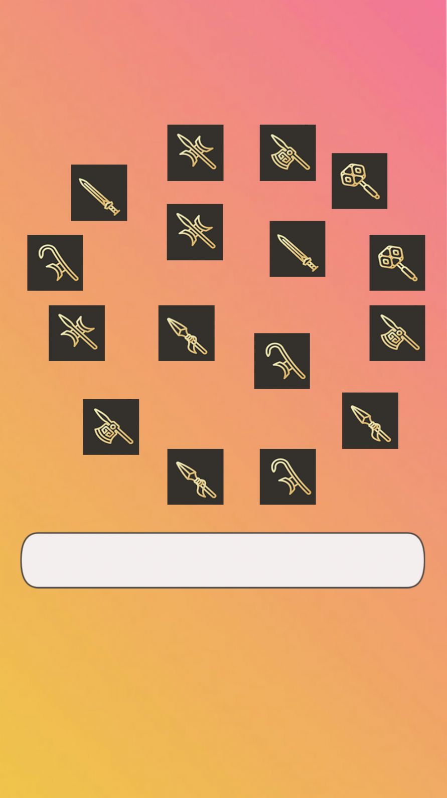 1、通过点击兵器将其消除,需要通过消除相同的图案,获得高分数;