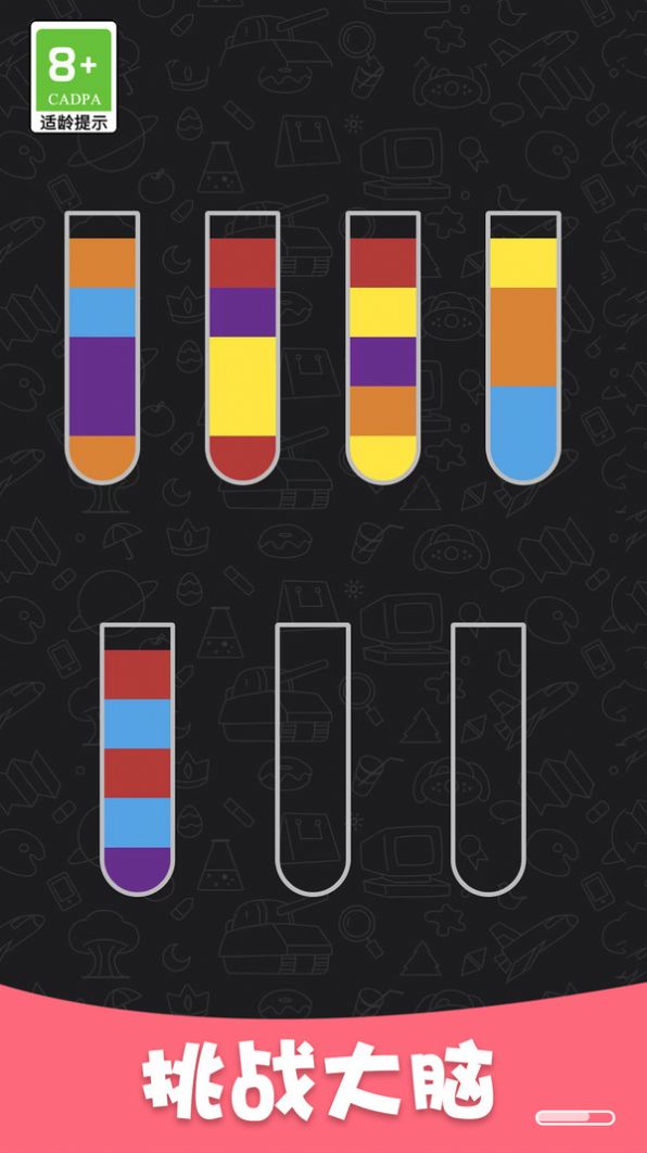 3、绚丽多彩的液体和瓶子,增加了游戏的视觉吸引力。