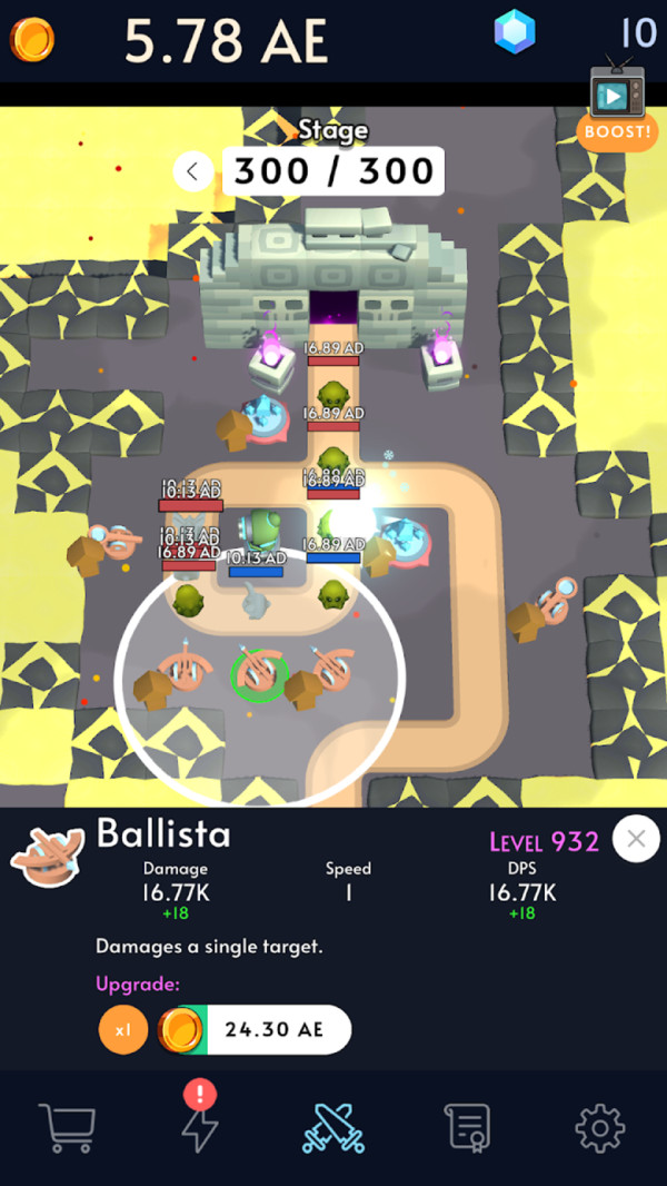 点击屏幕之中的空闲地区,玩家们就能够建造各种防御装置,还可以进行升级。