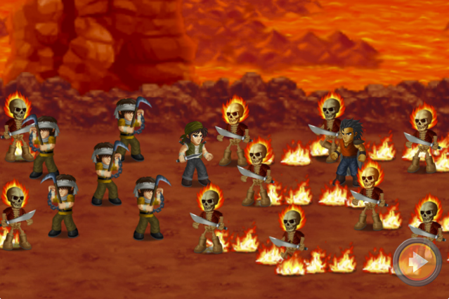 2、战争: 在战场上赚钱招兵、攻城夺营,与百人大战。