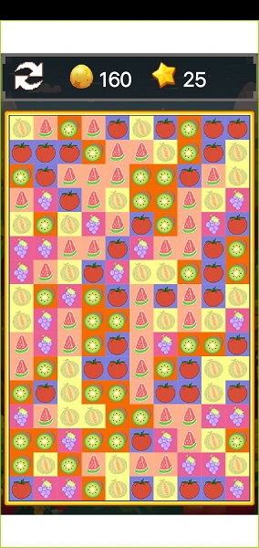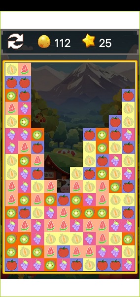 2、在规定的时间内,通过交换相邻的水果位置,将三个或以上相同水果连成一条直线进行消除;