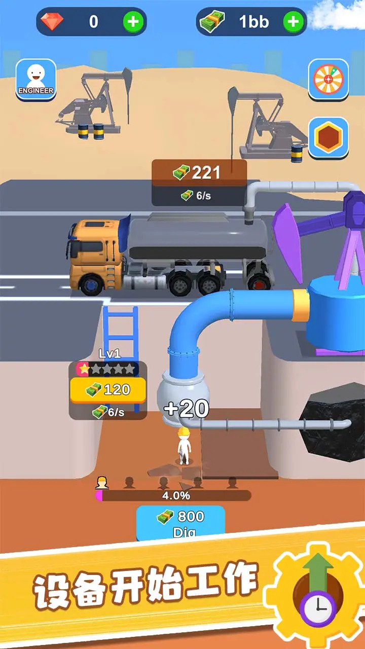 1、您可以使用赚取的金币来升级装备,获得更多的经验值和福利,帮助您成为石油行业的高手;
