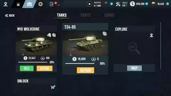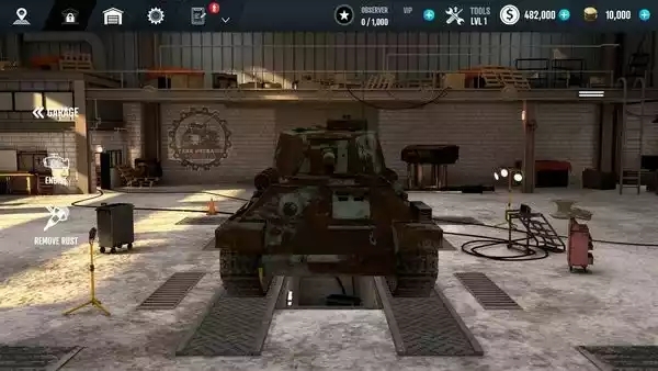 3、创建自己的坦克仓库,并在仓库中放置各种设备。废弃的坦克也可以以高价回收。