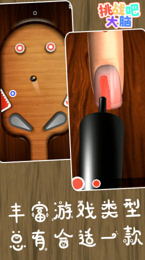 挑战吧大脑是一款很好玩的益智休闲游戏,游戏可以锻炼玩家的思维能力,丰富的谜题需要玩家去解开,游戏都是很有挑战性的,难度会不断的增加,玩家需要获得更高的分数,不同类型的题目玩家都是可以选择进行挑战的,高清的游戏画面十分的舒适赶紧来试试吧。