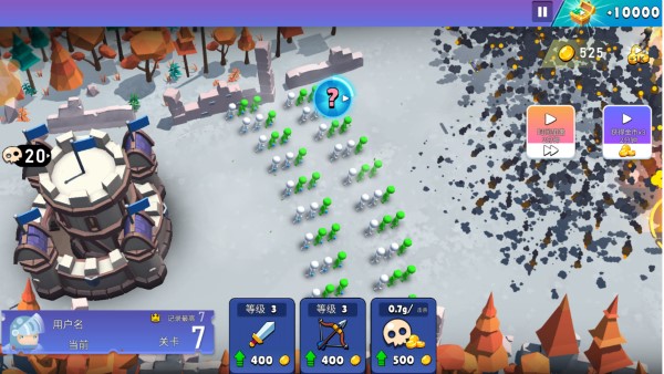 3、招募新角色组建军团,给不同颜色的火柴人分配任务,布置防守阵容