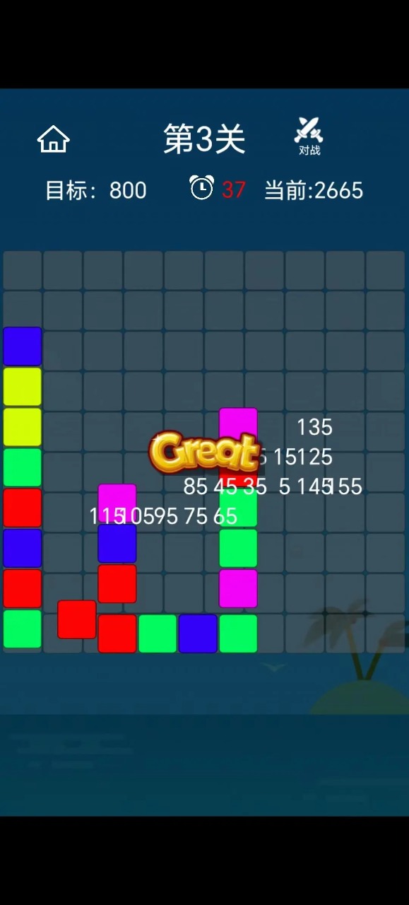 2、需要仔细观察关卡中的方块分布情况,找出可能形成的连续消除线路;