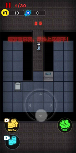1、游戏开始时候我们一定要进入宿舍,这样就可以产生金币应对接下来挑战。