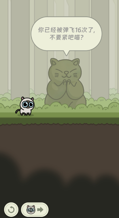2、触碰陷阱:当小猫碰到地刺等陷阱时,会被吓得向后退,累积碰撞次数会导致诅咒叠加,影响小猫的跳跃表现。