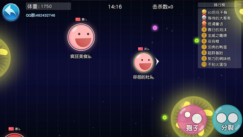 1、在线开始游戏,与几十人、上百人比赛,吃掉别人,成为最重的球;