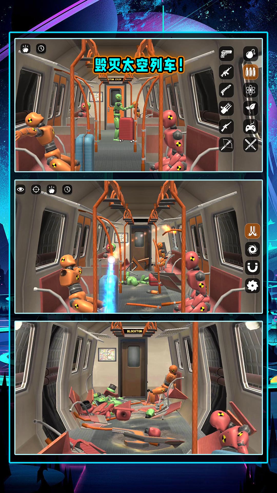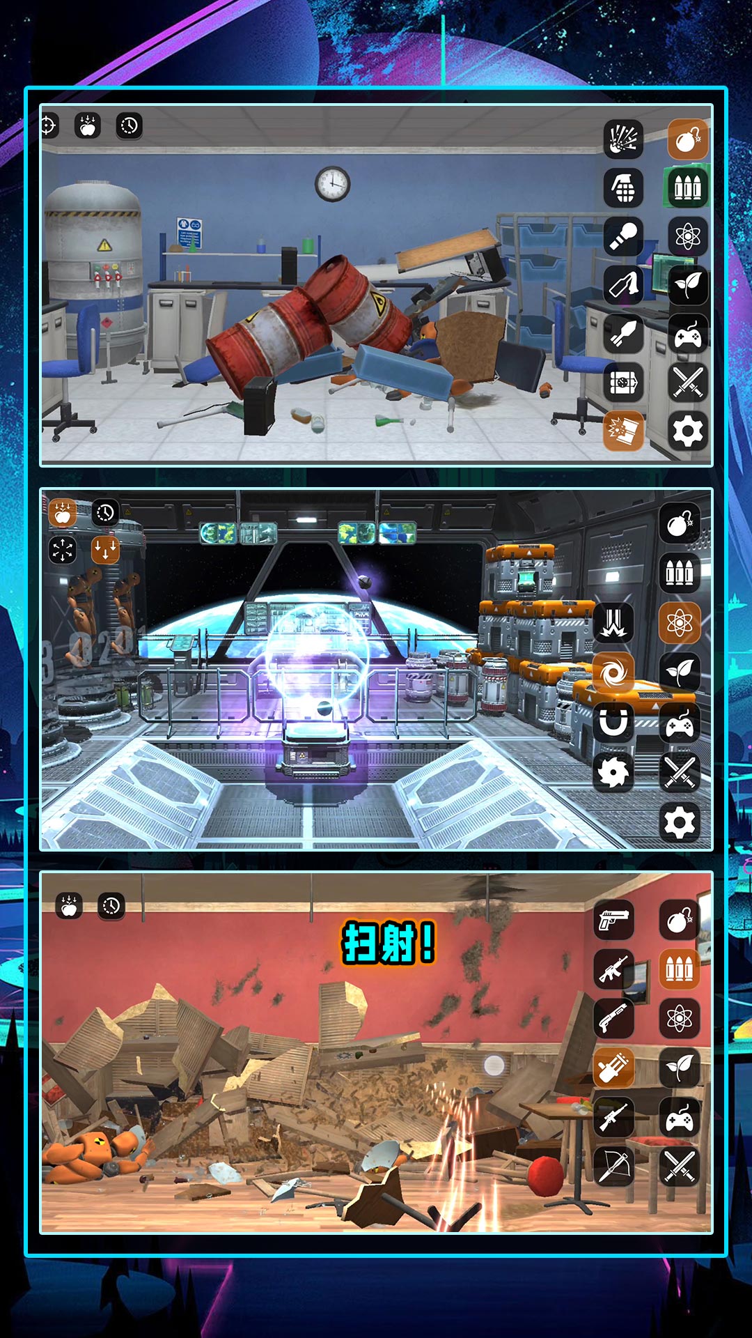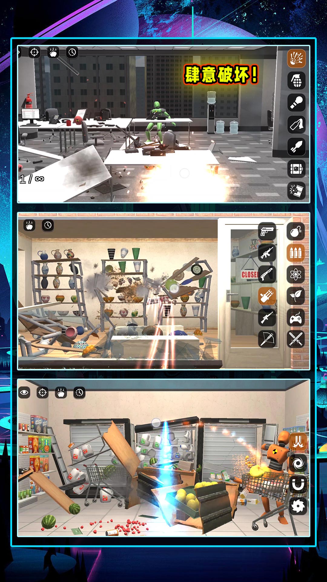 体验减压的游戏玩啊,各种不同类型的破坏武器,可以灵活运用起来