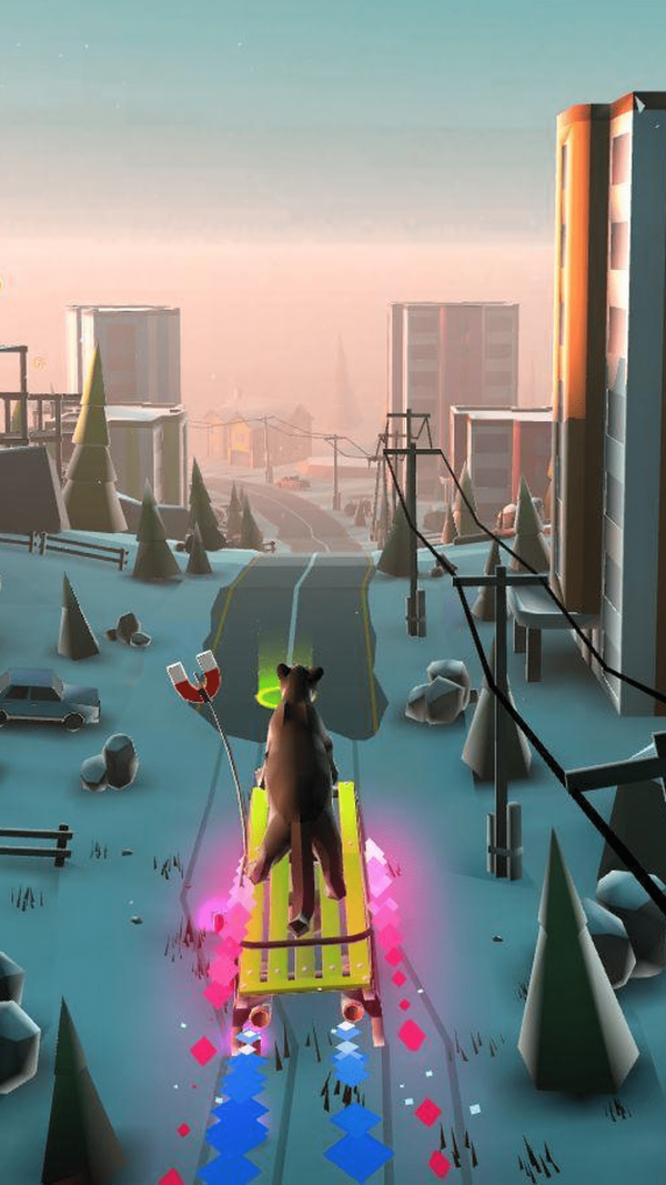 3、不同的小动物们自带技能,花样滑雪让你停不下来。