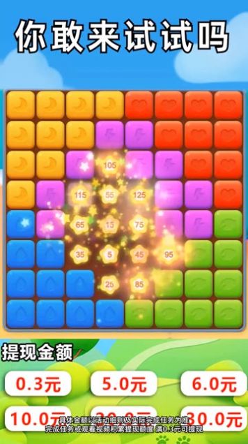3、使用各种道具来帮助自己完成挑战,比如炸弹可以一次性消除一片区域的方块。