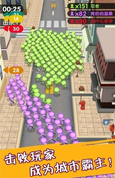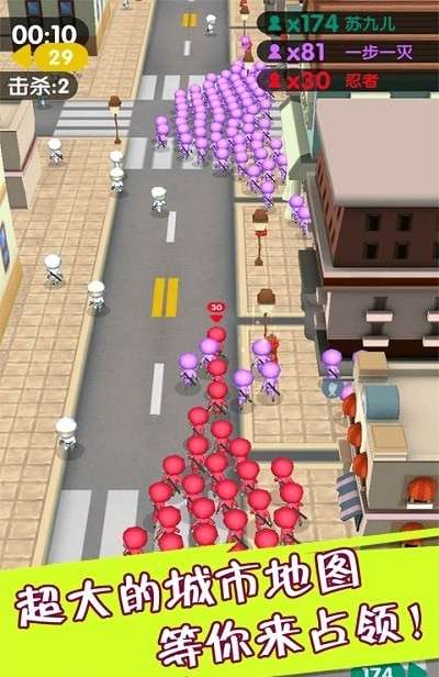 1.城市中有超级多的人,在奔跑的过程中你会征服中立的人们,让他们会加入你的奔跑大军中,