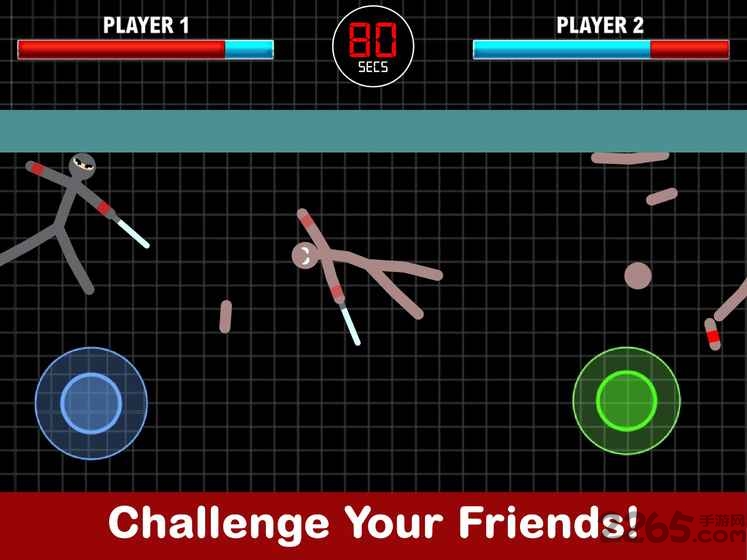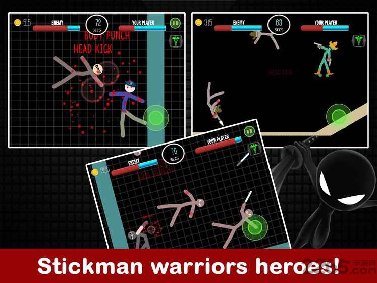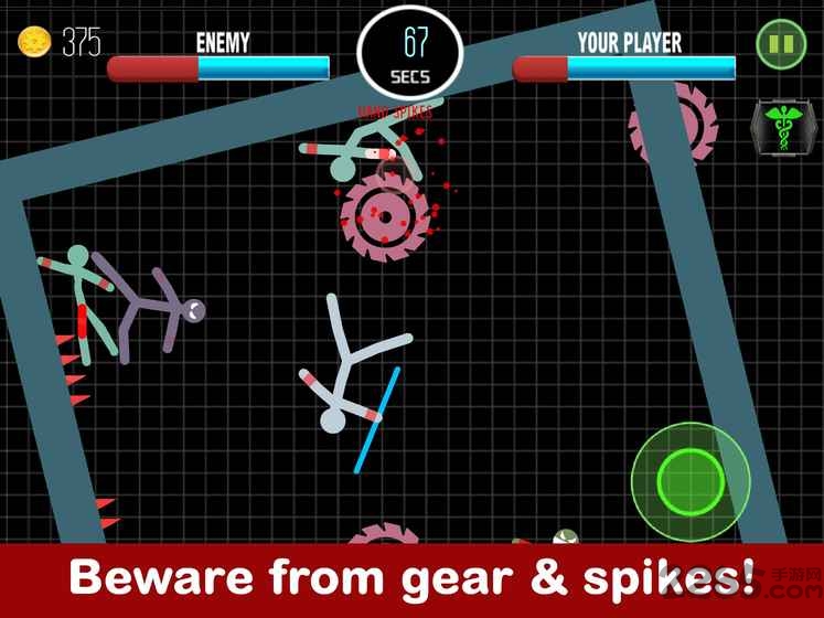 2、虚拟摇杆控制火柴人的移动,打败所有的敌人成为最强的战士;