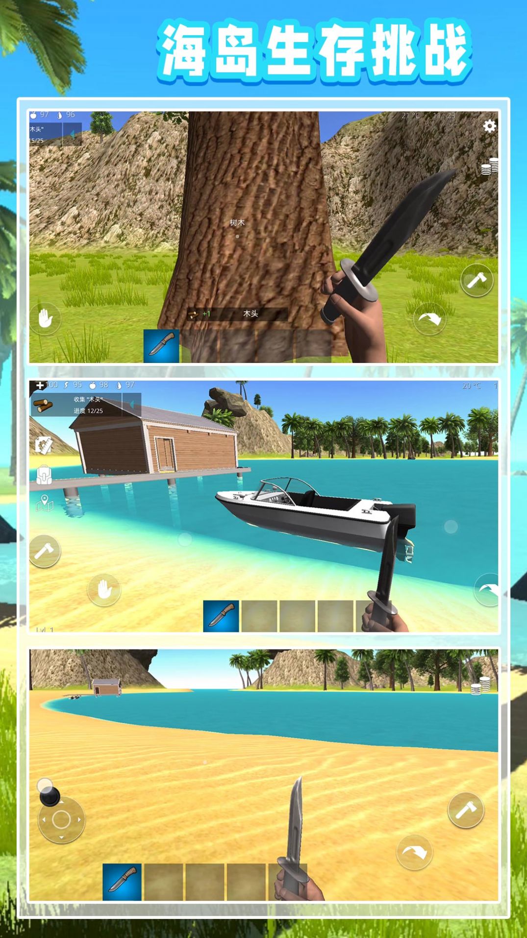 3、岛屿生存游戏有一个漂亮的屏幕和清晰的界面,创造了更真实的游戏体验。