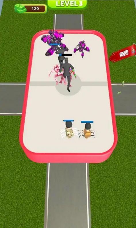 1、通过收集金币和能量点,在游戏中完成角色的升级和合并;