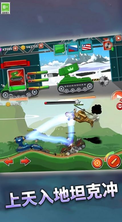 2、有着坦克升级系统,通过升级让您的坦克攻击更加强大、防御更加稳固、生命值更加完美;