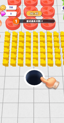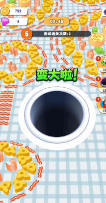 3、为了增加黑洞的大小,玩家需要左右移动手指来控制黑洞的位置并吞咽食物。