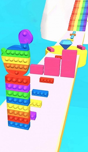 3、在奔跑过程中,玩家需要时刻注意躲避各种障碍物,例如移动的方块、堆叠的障碍物等。