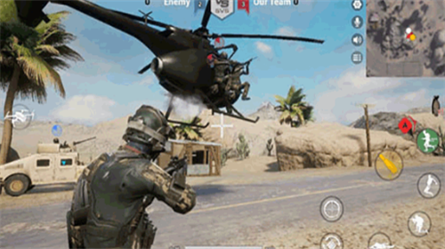 4、各兵种,和各类载具,完美配合,直升机上的士兵可以使用自己的单兵武器,向地面的敌人开火。