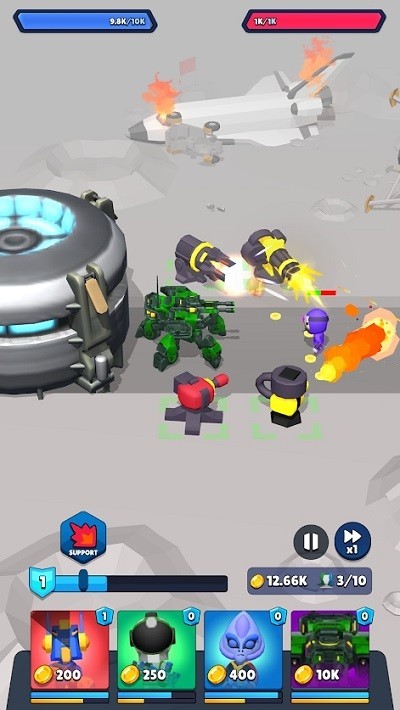 3、和己方经济状况选择派出不同的兵种抵御或进攻,比谁先摧毁对方的基地。