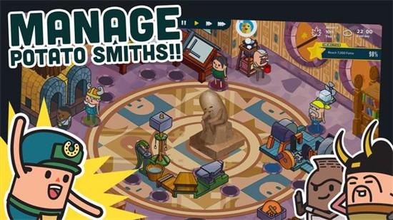 1、玩家可以在游戏之中管理并训练 超过30 多位强力的土豆铁匠