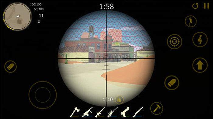 3、采用虚拟摇杆加触摸式设计,左边虚拟摇杆控制移动,右边点触式则操控玩家跳跃、蹲伏、射击等。