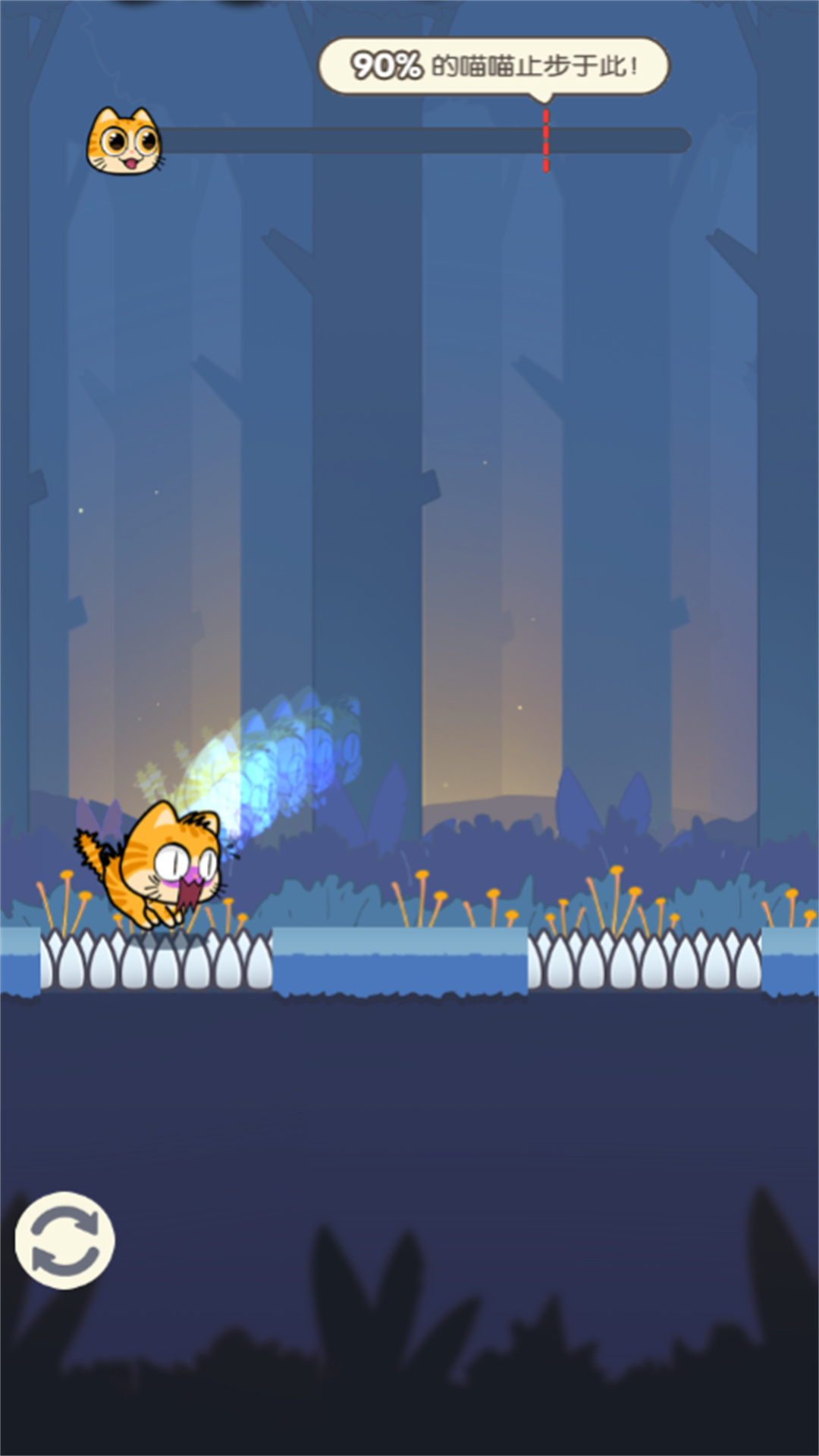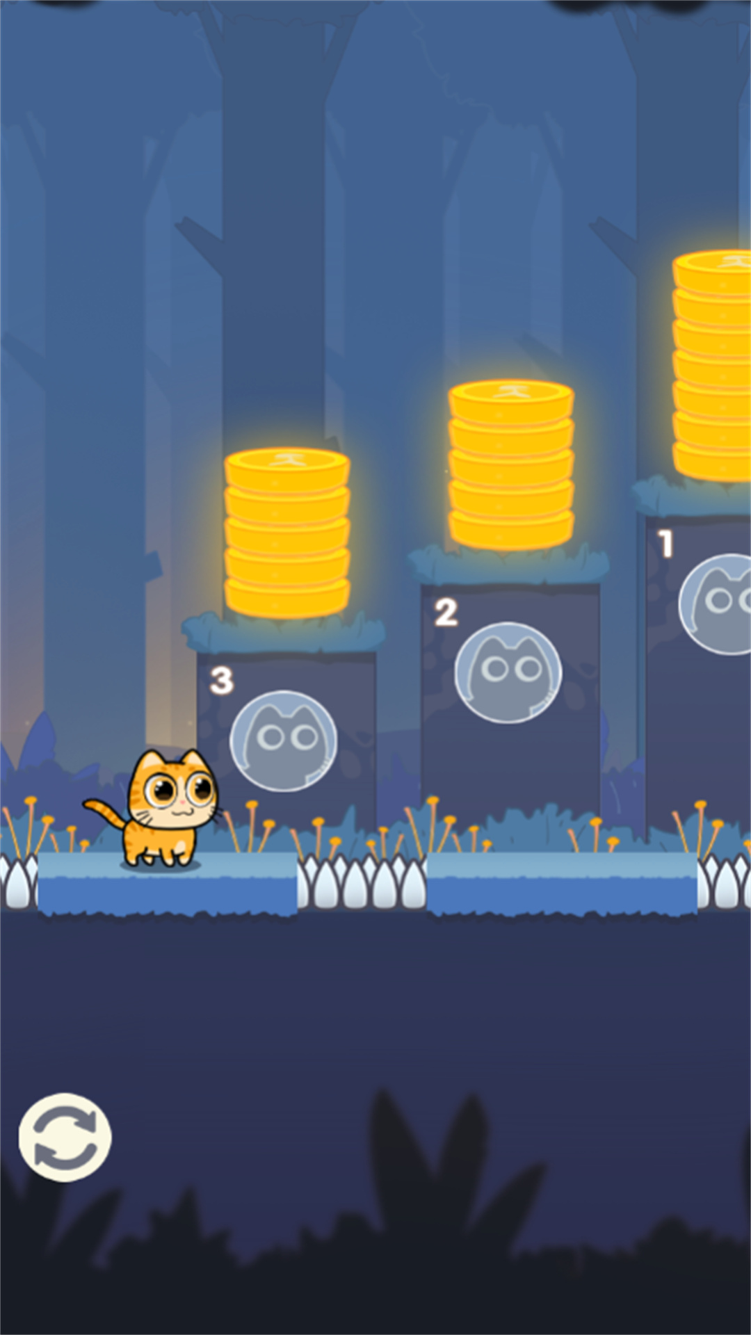 1、游戏中的主角——冒险喵,形象可爱,深受玩家喜爱,控制着它一路跳跃闯关;