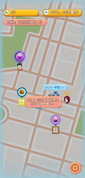 3、会有天气影响,会影响你的送餐速度,当然也会有高额的送餐费用可以获得。