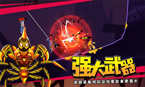蜘蛛与激光剑是一款非常好玩的手机火柴人怪物系列战斗题材游戏,在这款游戏中玩家们能够通过控制自己的蜘蛛在线进行游戏闯关挑战,非常的趣味,在这里你能够享受到最多样的武器装备,丰富的格斗设计玩法,让你感受到最酷炫的游戏操作,更多的关卡以及怪物等你来打败。
