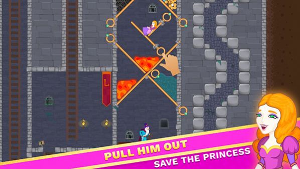 1、通过拉动针脚,解开复杂的绳子,营救公主,操作简单有趣;