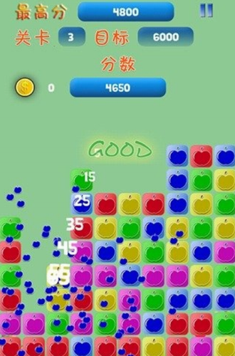 3、充分的将消除的元素加入进来,玩家只需要点击相同颜色的苹果即可进行消除。