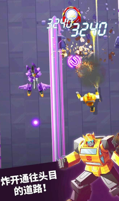 3、变形金刚大黄蜂精美的画面、华丽的变形动画、激烈的战斗场景给玩家带来极具视觉冲击力的游戏体验。