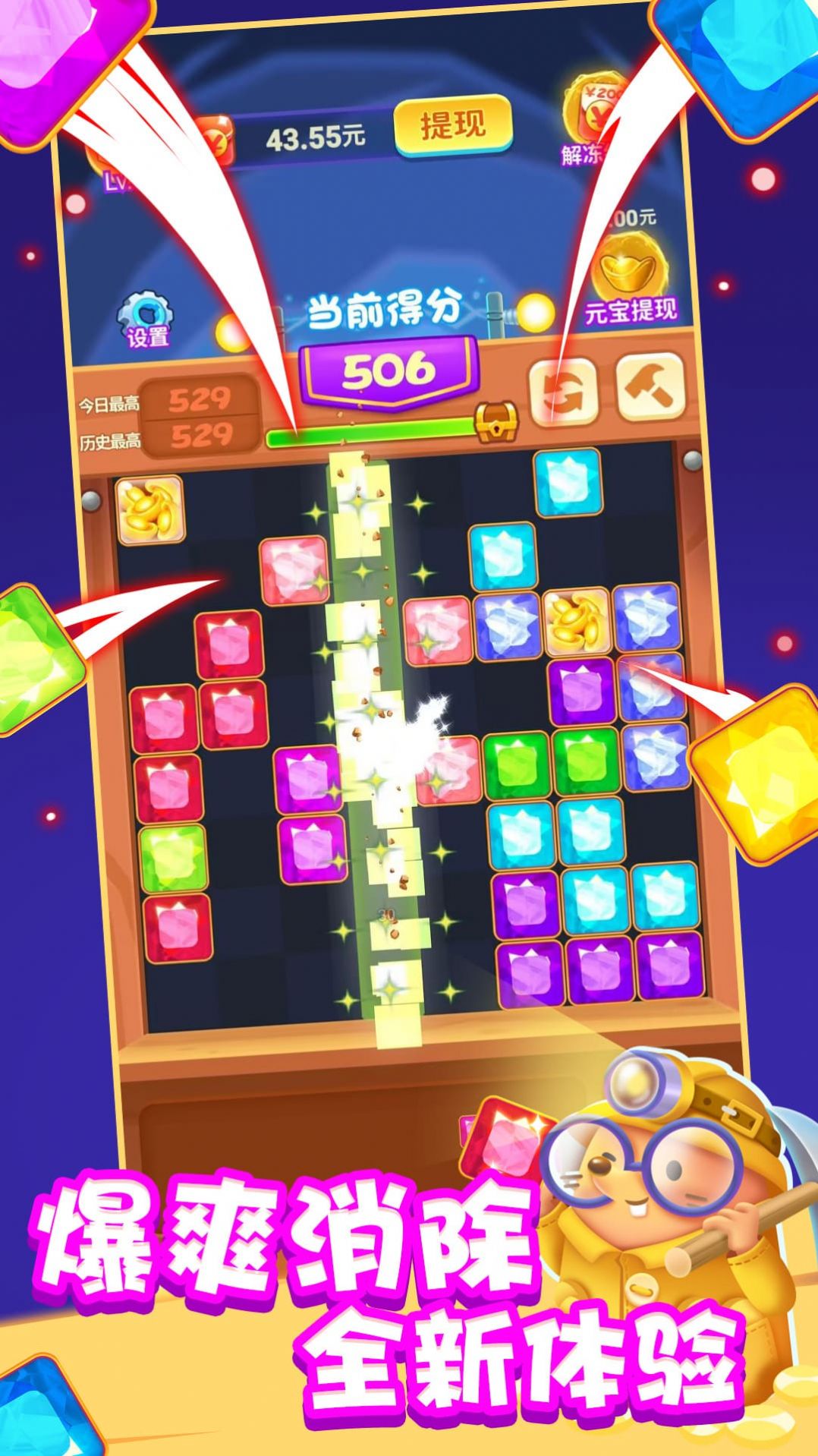 1、提供多种道具和特效,可以帮助玩家更快地消除方块,获取更高的奖励;