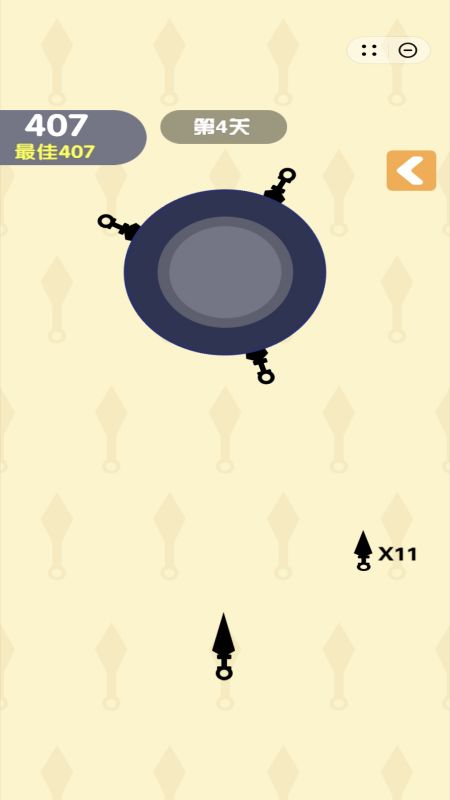 1、简单的操作轻松点击屏幕飞出飞针,不要触碰其余飞针;