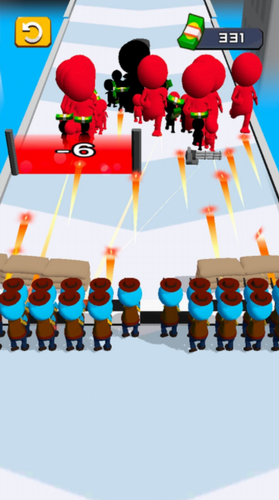 2.集合沿途的同颜色小人,疯狂射击敌人,突出重围成功到达终点。
